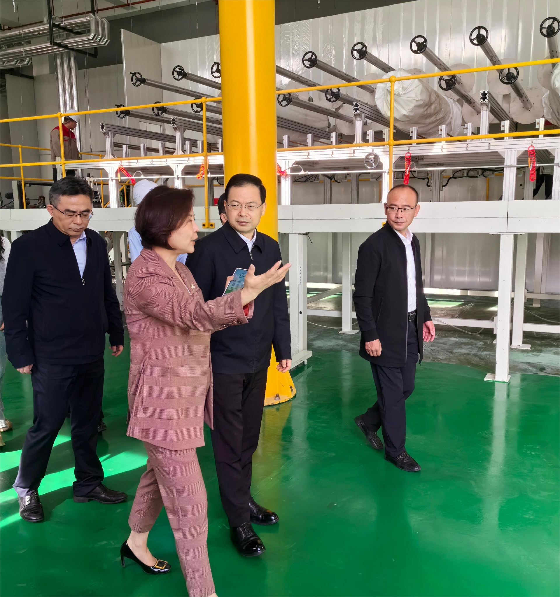 李中書(shū)記一行參觀了安徽振申生產(chǎn)車(chē)間,詳細(xì)了解了保冷絕熱行業(yè)產(chǎn)品制造應(yīng)用以及企業(yè)建設(shè)進(jìn)展、生產(chǎn)經(jīng)營(yíng)、發(fā)展規(guī)劃等情況,并就增強(qiáng)型聚氨酯絕熱模塊的技術(shù)優(yōu)勢(shì)、生產(chǎn)研發(fā)、項(xiàng)目建設(shè)等方面內(nèi)容,與章雅琴董事長(zhǎng)進(jìn)行深入交流。李中書(shū)記對(duì)安徽振申新材料項(xiàng)目建設(shè)及投產(chǎn)速度表示高度贊譽(yù),期望公司持續(xù)努力,加速創(chuàng)新研發(fā)與成果轉(zhuǎn)化,占領(lǐng)技術(shù)制高點(diǎn),爭(zhēng)取市場(chǎng)份額,共同譜寫(xiě)政企協(xié)同、互利共贏的高質(zhì)量發(fā)展篇章。