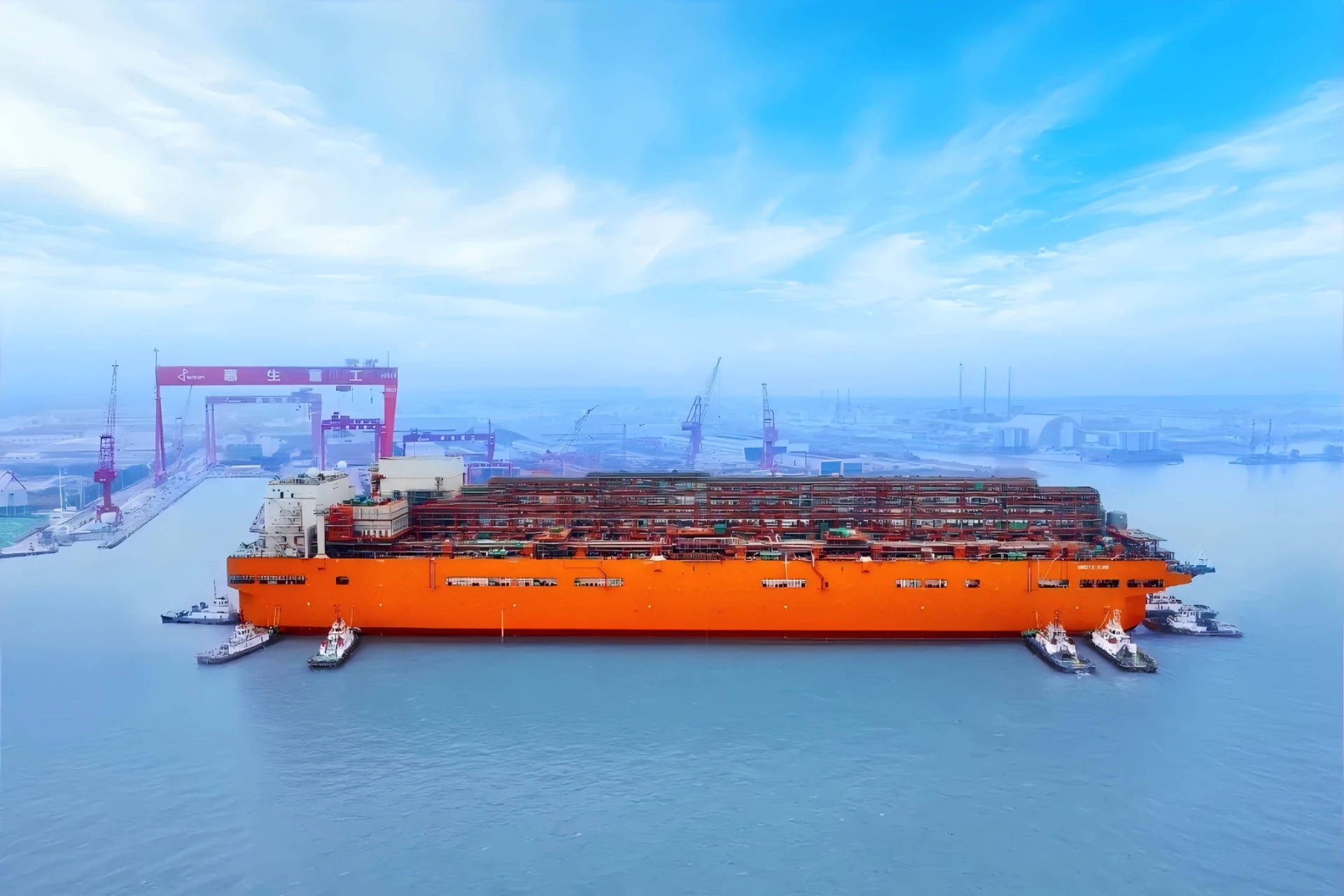 近日,我國首座大型浮式天然氣液化裝置出江,705米拖帶船隊長度創(chuàng)長江歷史之最。在海事部門10艘海巡艇的接力維護下,由惠生清潔能源建造的我國首座大型浮式天然氣液化裝置“NGUYA FLNG”輪順利離開長江江蘇段,前往舟山船廠碼頭進行后續(xù)舾裝作業(yè)。
