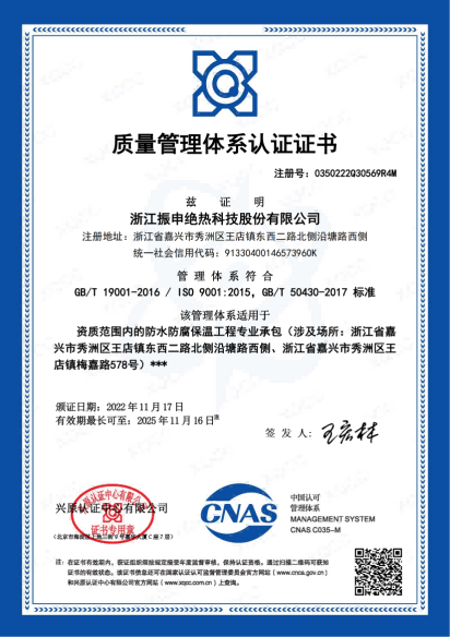 通過層層把關,嚴格控制了產品質量,取得了良好的品質。浙江振申的所有產品質量經抽檢測試均達到國家規定的技術要求和世界工業發達國家保冷結構冷耗水平。是管理規范化、質量 標準化、產品系列化、市場誠信化,集產品科研開發、制造加工、安裝施工于一體的資深信譽企業;企業被評為重合同守信用的誠信企業;建設單位規范施工的放心企業。、